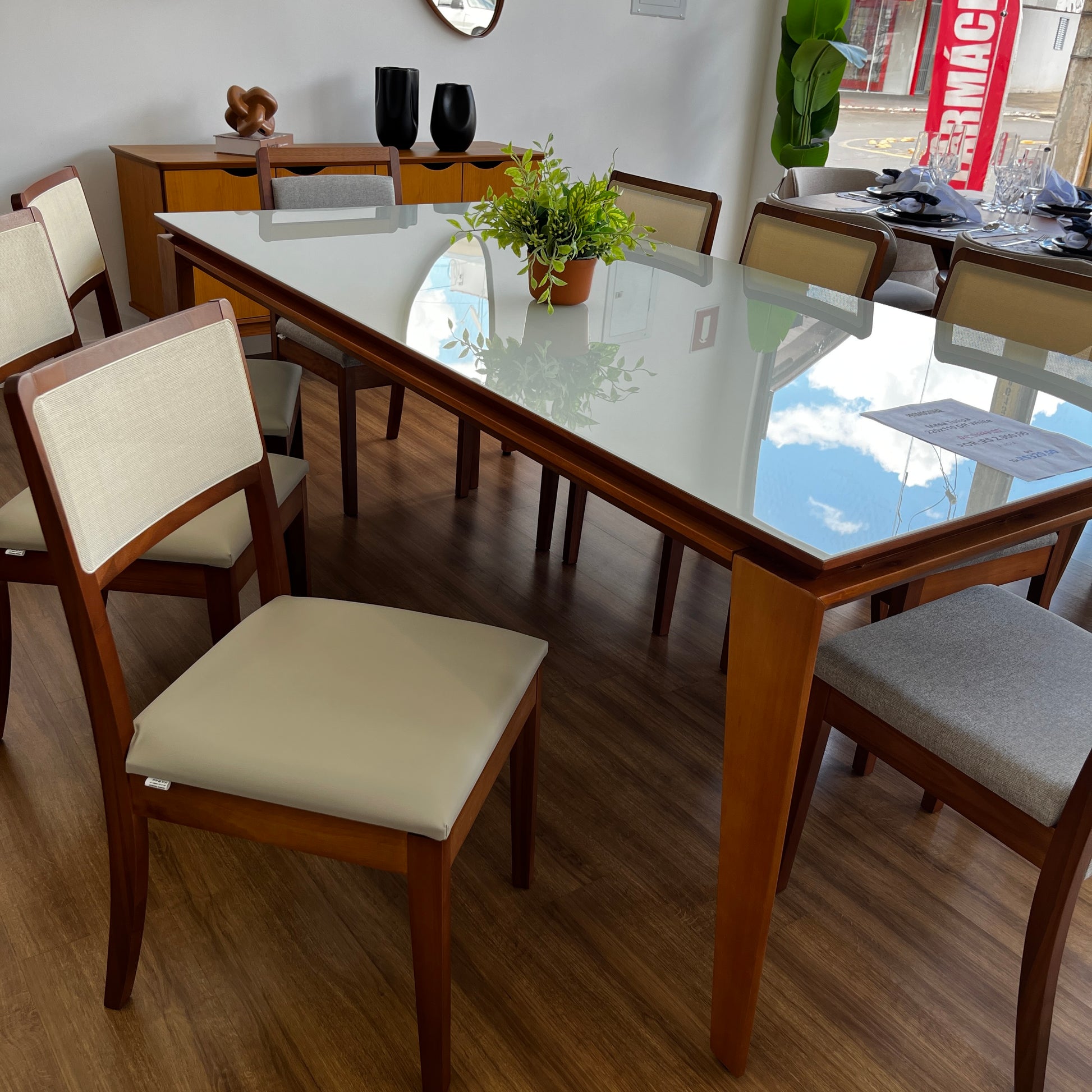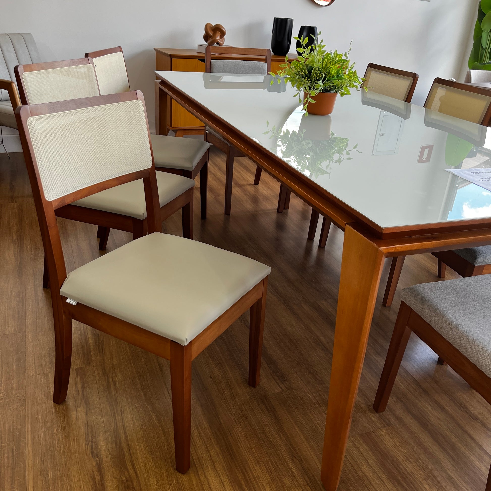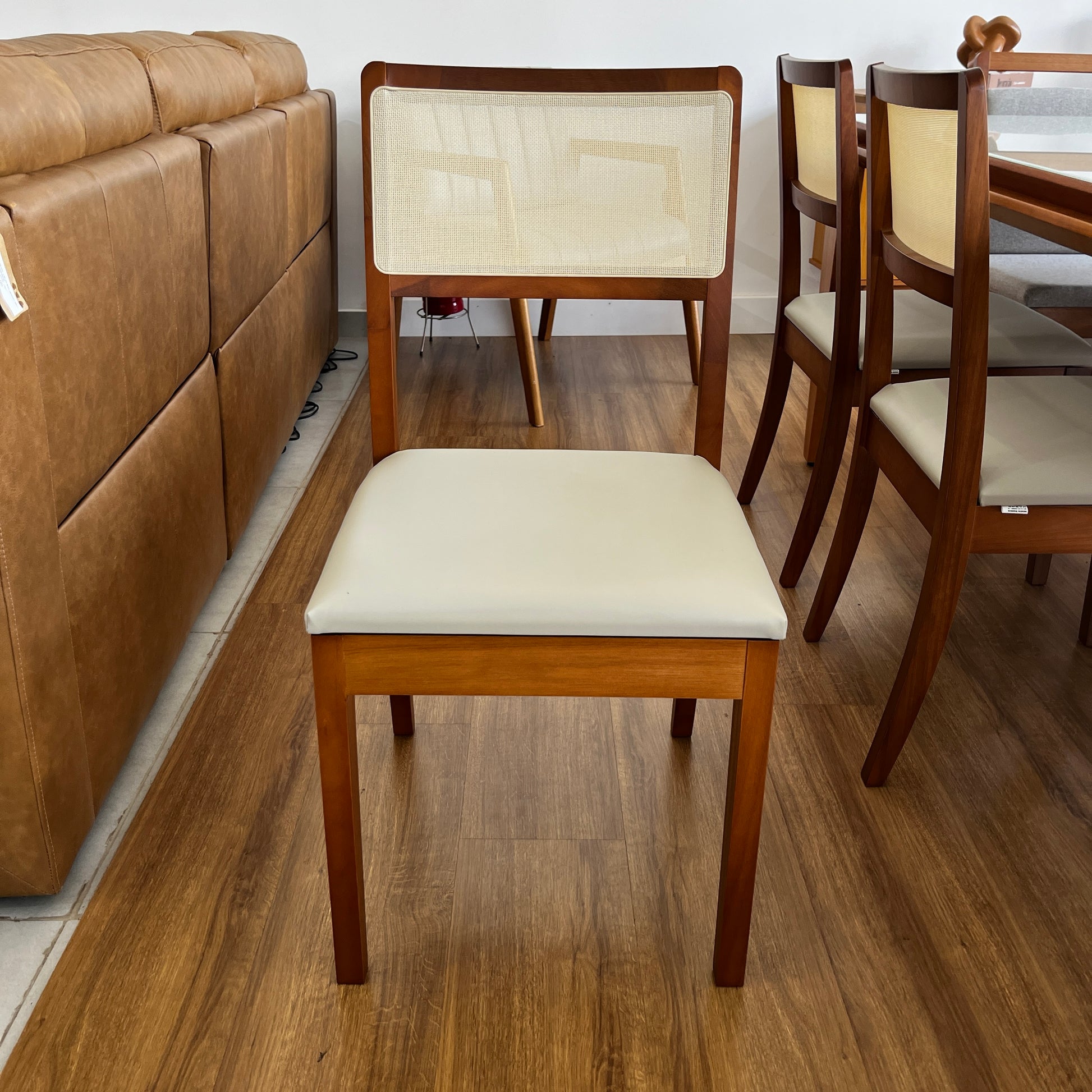 - Encosto em fibra natural de PVC, proporcionando charme e estilo