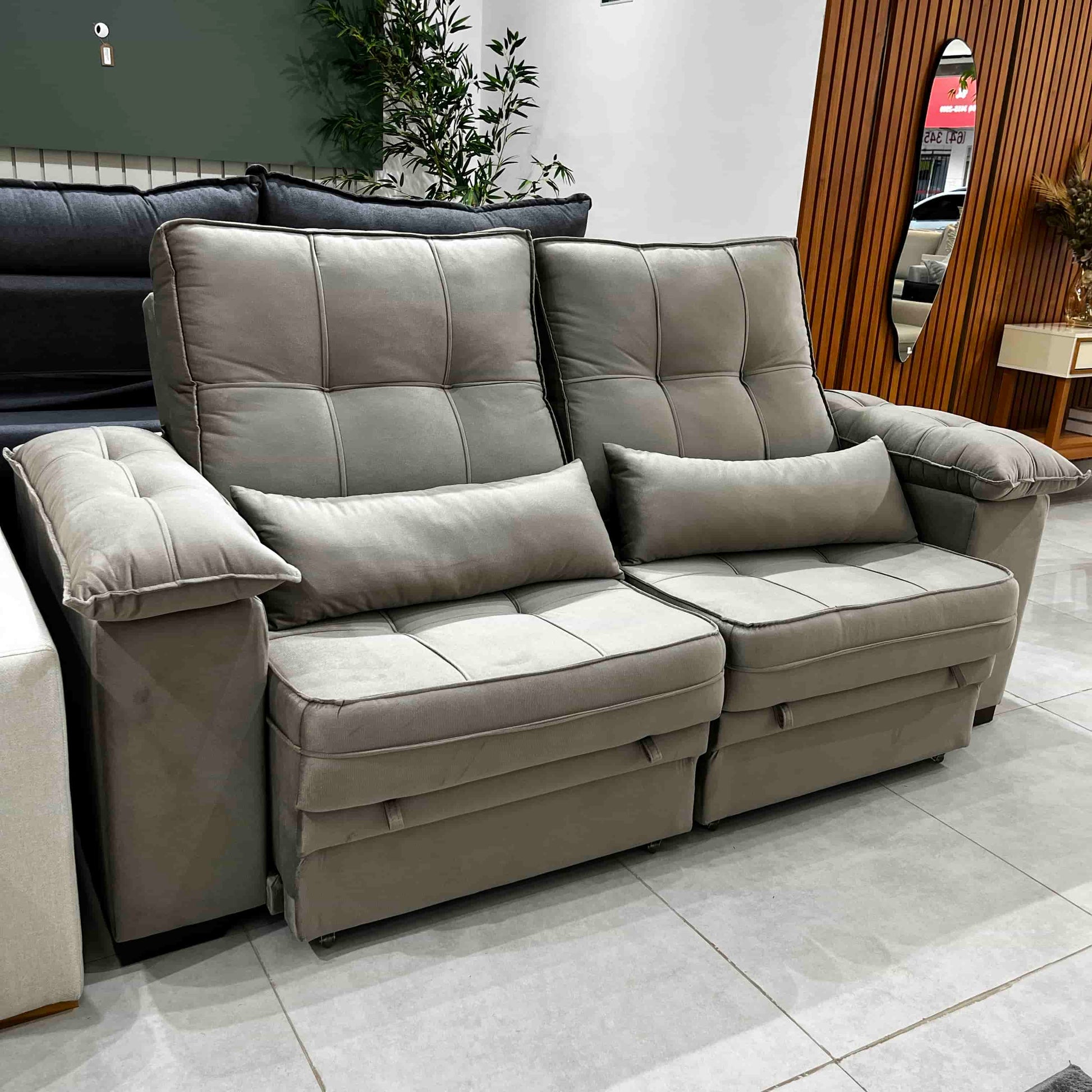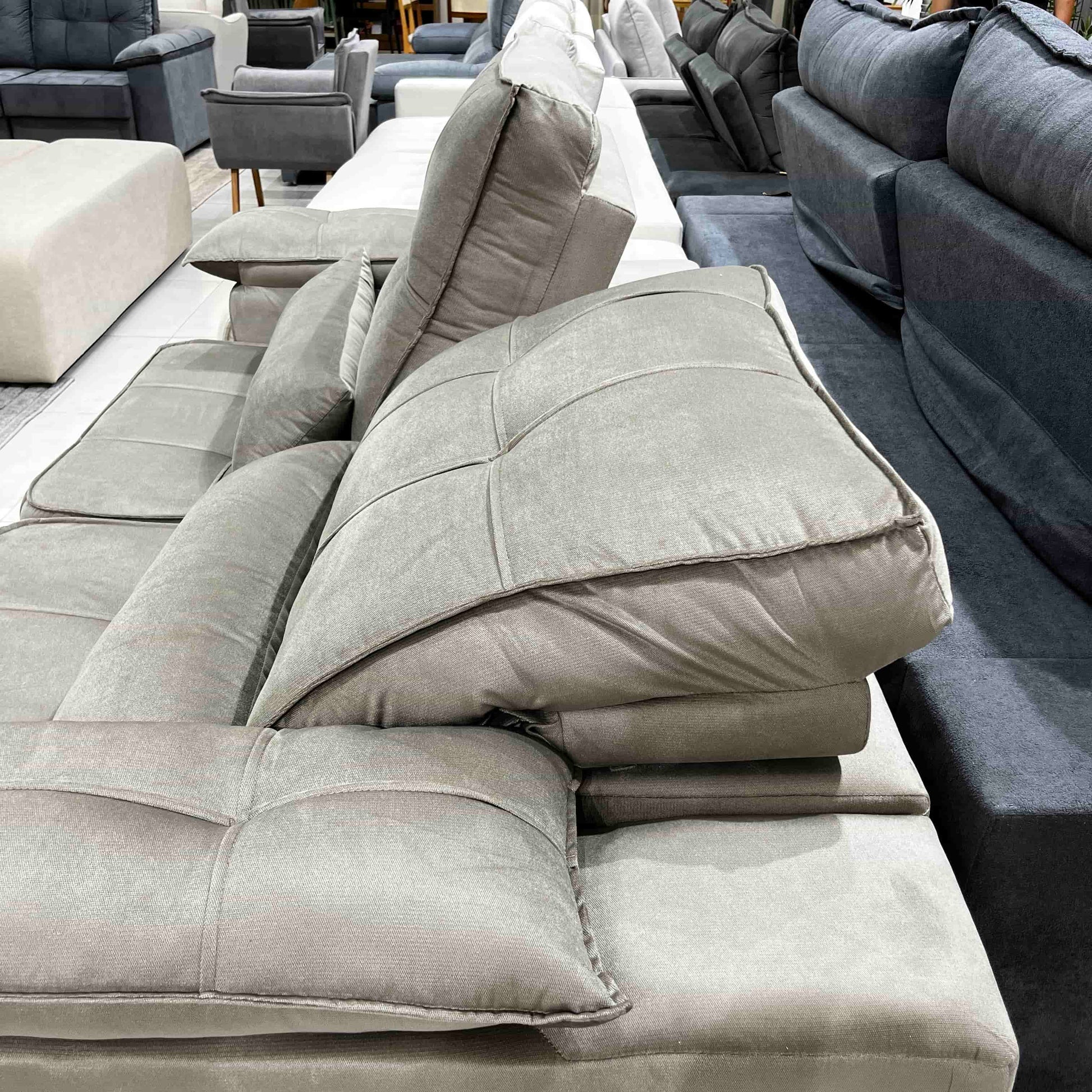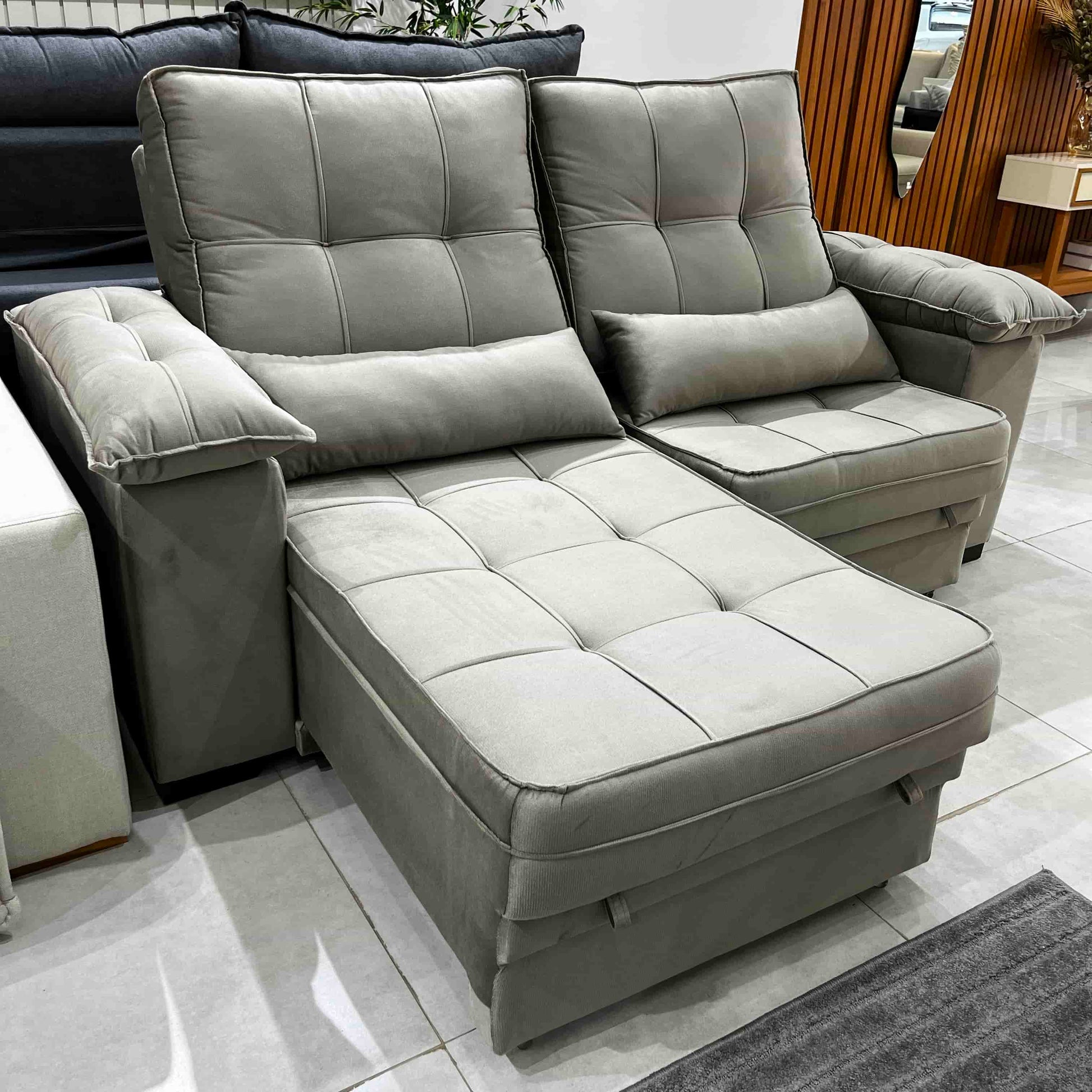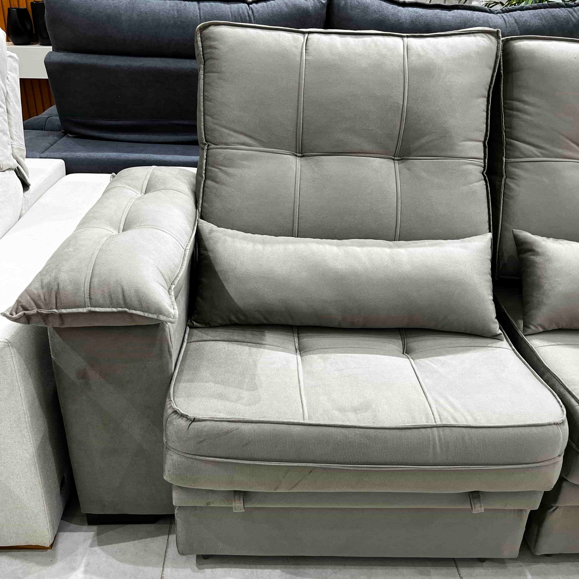 - Braços amplos e almofadas extras, garantindo um toque extra de aconchego
